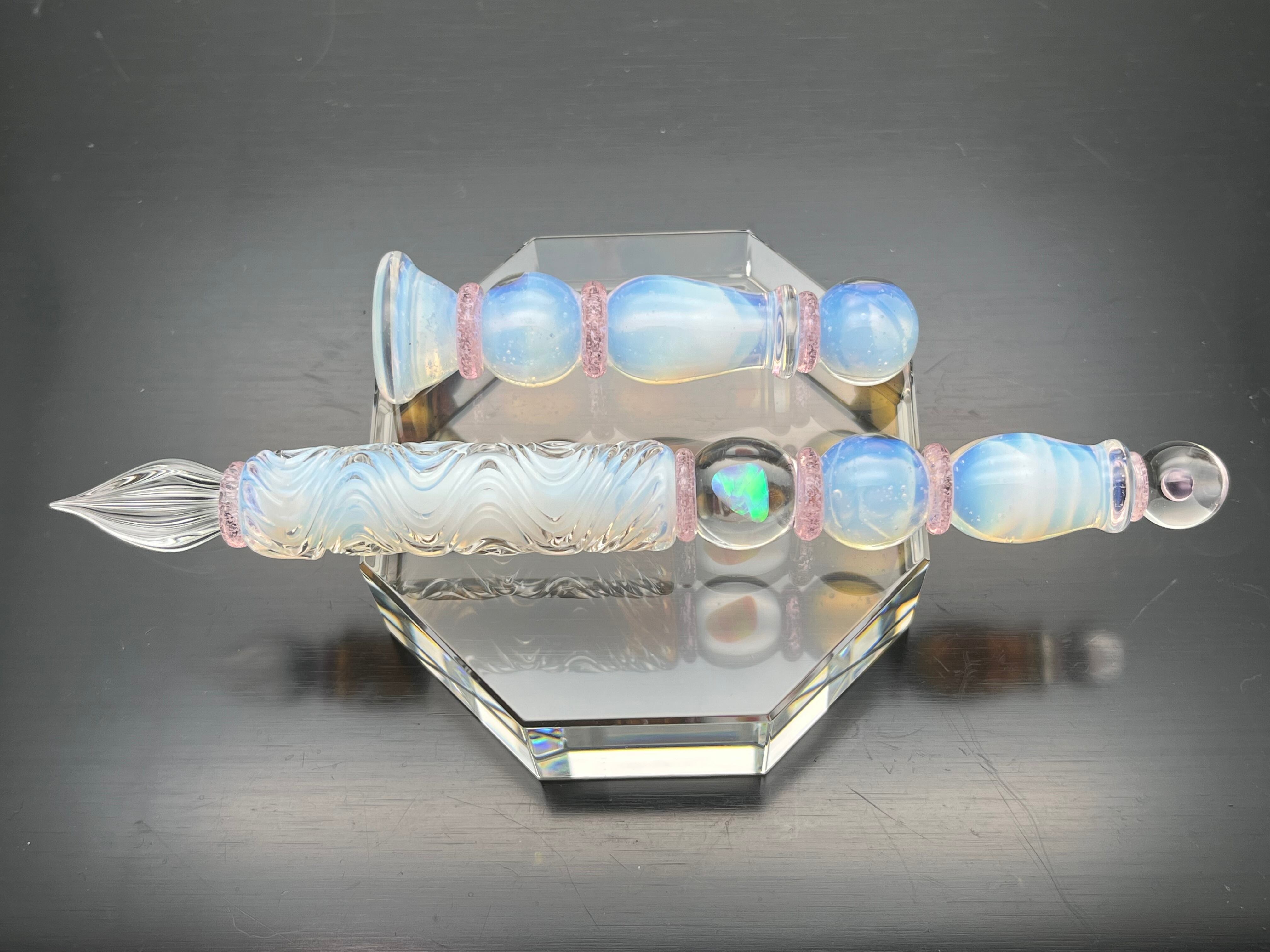 また、通常のガラスペンの倍の重さがあり、軸もしっかり厚みがある。重厚感と高級感を兼ね備えたガラスペンです。