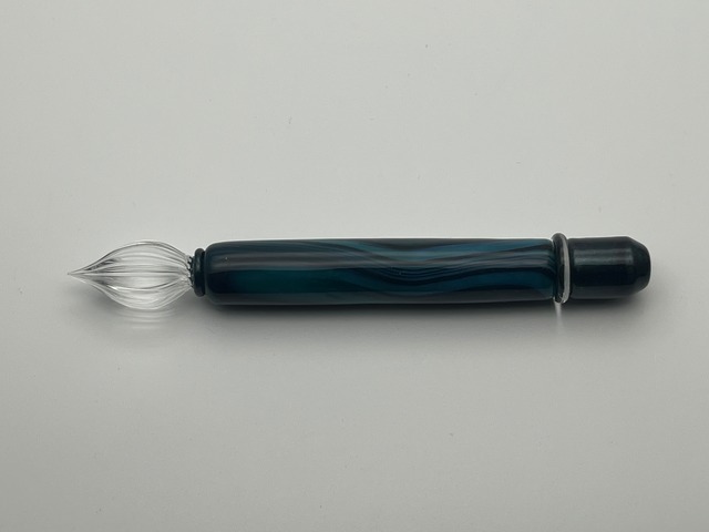 ターコイズとラメ紺のカラーリングが目を引く、ガラスペンが登場しました!手に馴染む持ちやすい形状で、書き味もスムーズで快適です。オシャレなデザインと使い心地の良さが絶妙にマッチした、おしゃれな文房具です。 職人の手によって一つひとつ丁寧に製作されたこのガラスペンは、贈り物にも最適。大切な人へのプレゼントや自分へのご褒美にもオススメです! 書くことが楽しくなるガラスペンで素敵な思い出をたくさん作りましょう。お気に入りのカラーで、オシャレで便利なこのアイテムをお楽しみください。