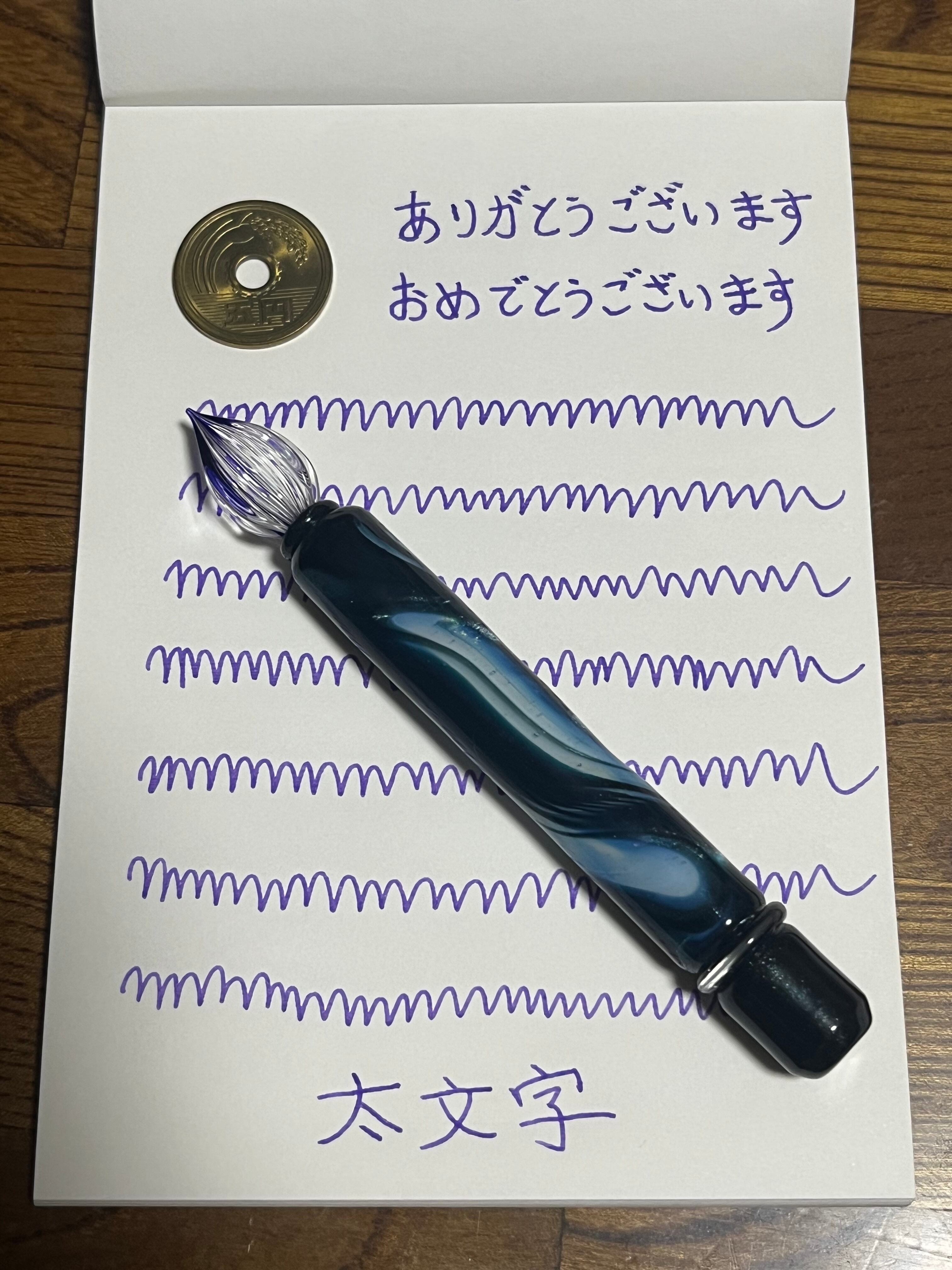 ホワイトブルーとラメ紺のカラーリングが目を引く、ガラスペンが登場しました!手に馴染む持ちやすい形状で、書き味もスムーズで快適です。オシャレなデザインと使い心地の良さが絶妙にマッチした、おしゃれな文房具です。 職人の手によって一つひとつ丁寧に製作されたこのガラスペンは、贈り物にも最適。大切な人へのプレゼントや自分へのご褒美にもオススメです! 書くことが楽しくなるガラスペンで素敵な思い出をたくさん作りましょう。お気に入りのカラーで、オシャレで便利なこのアイテムをお楽しみください。