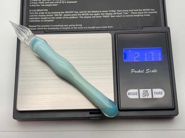 ガラスを溶かして、発色のチェックし、そのままガラスペンにした為、格安販売です。