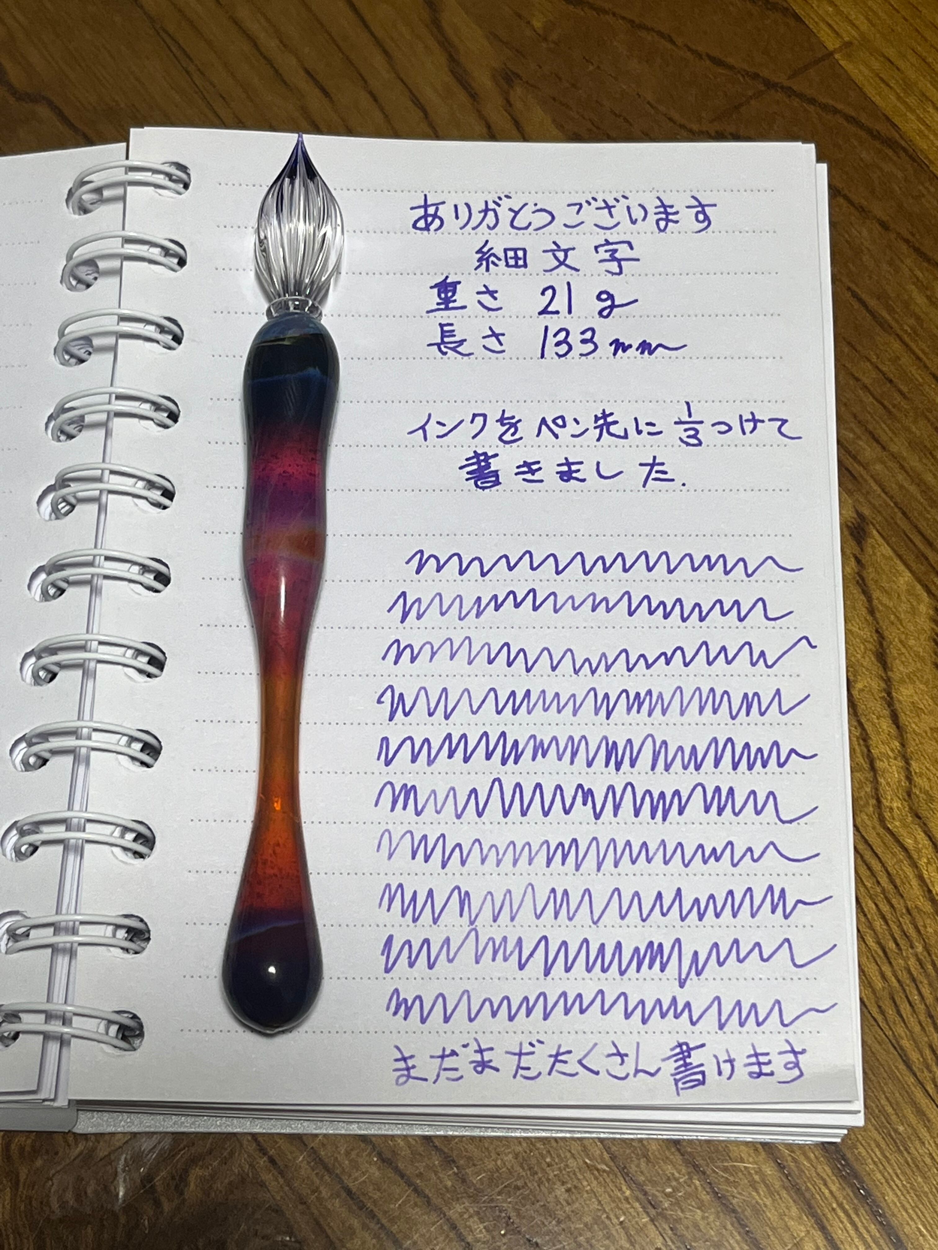 こちらのガラスペンは書きやすさを意識している為、通常サイズの半分以下となり、軽量で短く、疲れずに書きやすくなっております。